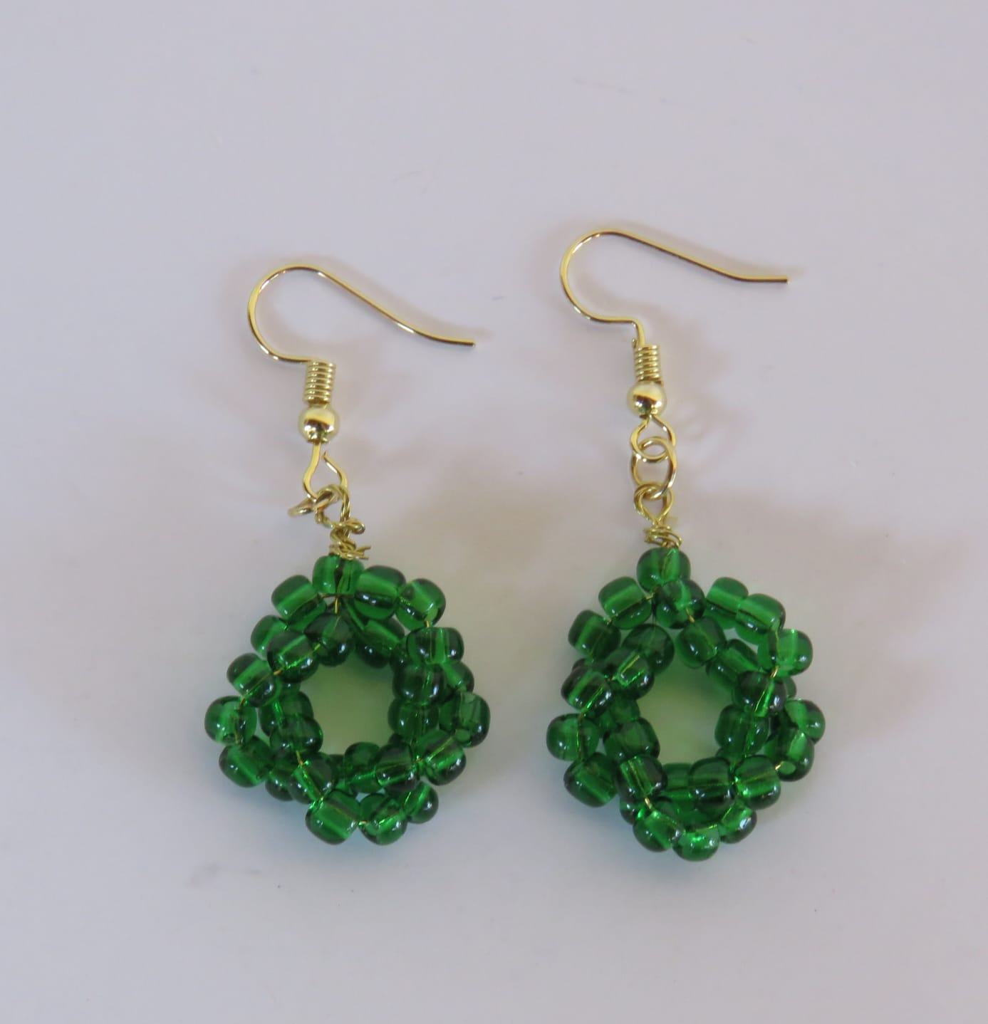 Descrição: Brinco feito de miçangas verde com base de formato de anzol banhado a ouro. Ideal para o dia a dia.